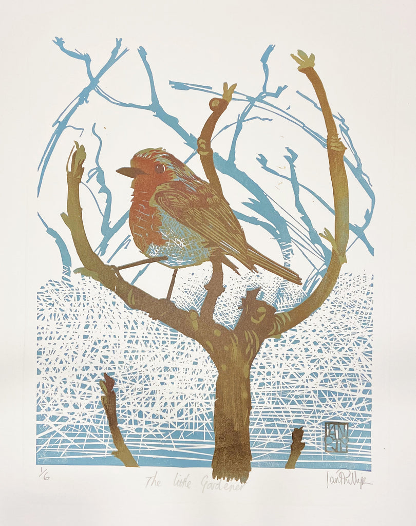 A Christmas treat. The last two of the edition of the this little Christmas Robin. Reduction linocut.Image size 380mm x 275mmPrinted on 250gsm BFK Rives.
