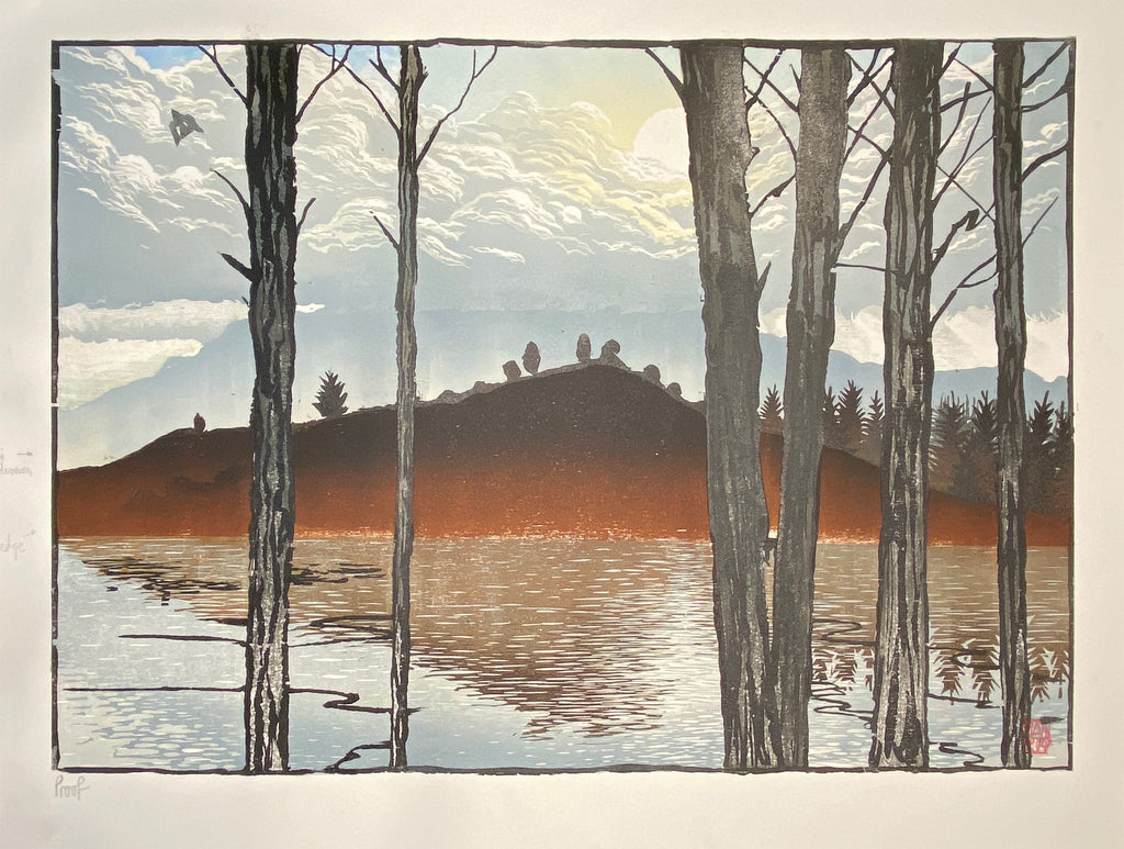 Working on the balance of tones, and colour. Trying different weights of colour for the mid-ground hill. For this experiment I went warm and strong.